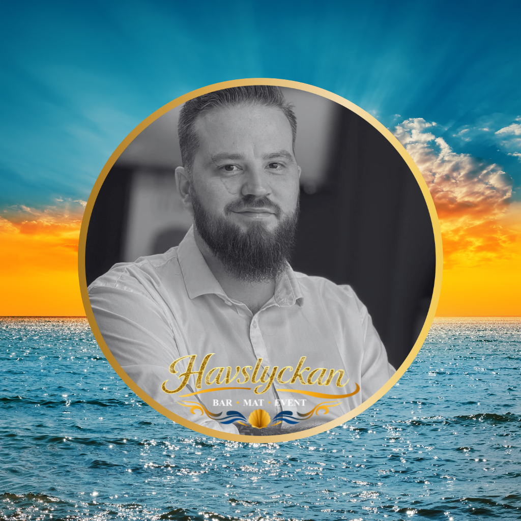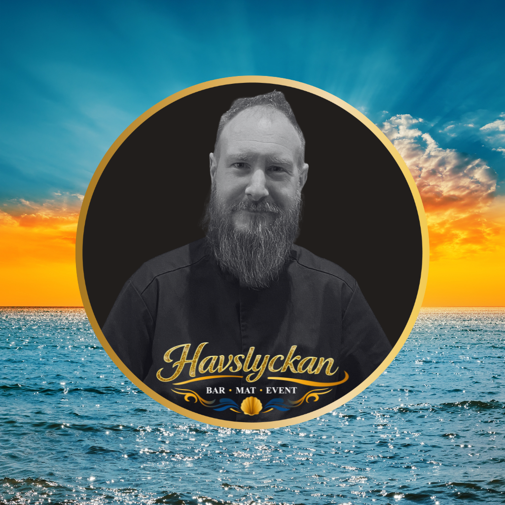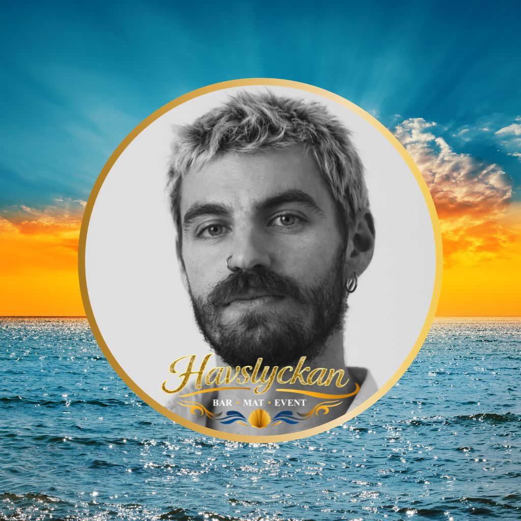“Oscar – Bar ansvarig & Kock – kombinerar erfarenhet från bar och kök med magiska cocktails, smakrik mat, närvaro och en glädje som gör varje kväll på Havslyckan & Bollbrolyckan minnesvärd.”